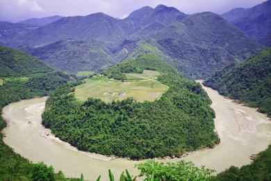 湖畔西南有崗日嘎布雪山,南有阿扎貢拉冰川,東北方向有伯舒拉嶺。四周雪山的冰雪融水構(gòu)成了然烏湖主要的補(bǔ)給水源,井使湖水向西傾瀉形成西藏著名河流雅魯藏布江重要支流帕隆藏布的上源之一。其形成是由于山體滑坡或泥石流堵塞河道而形成的堰塞湖,處于喜馬拉雅山、念青唐古拉山和橫斷山的對撞處。
